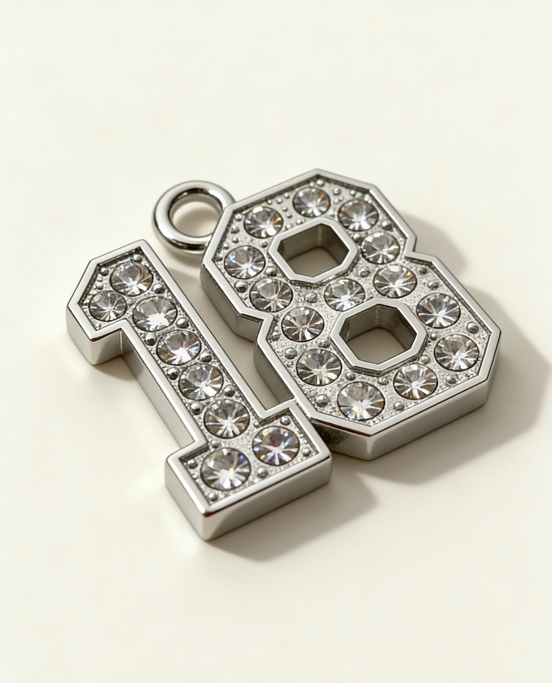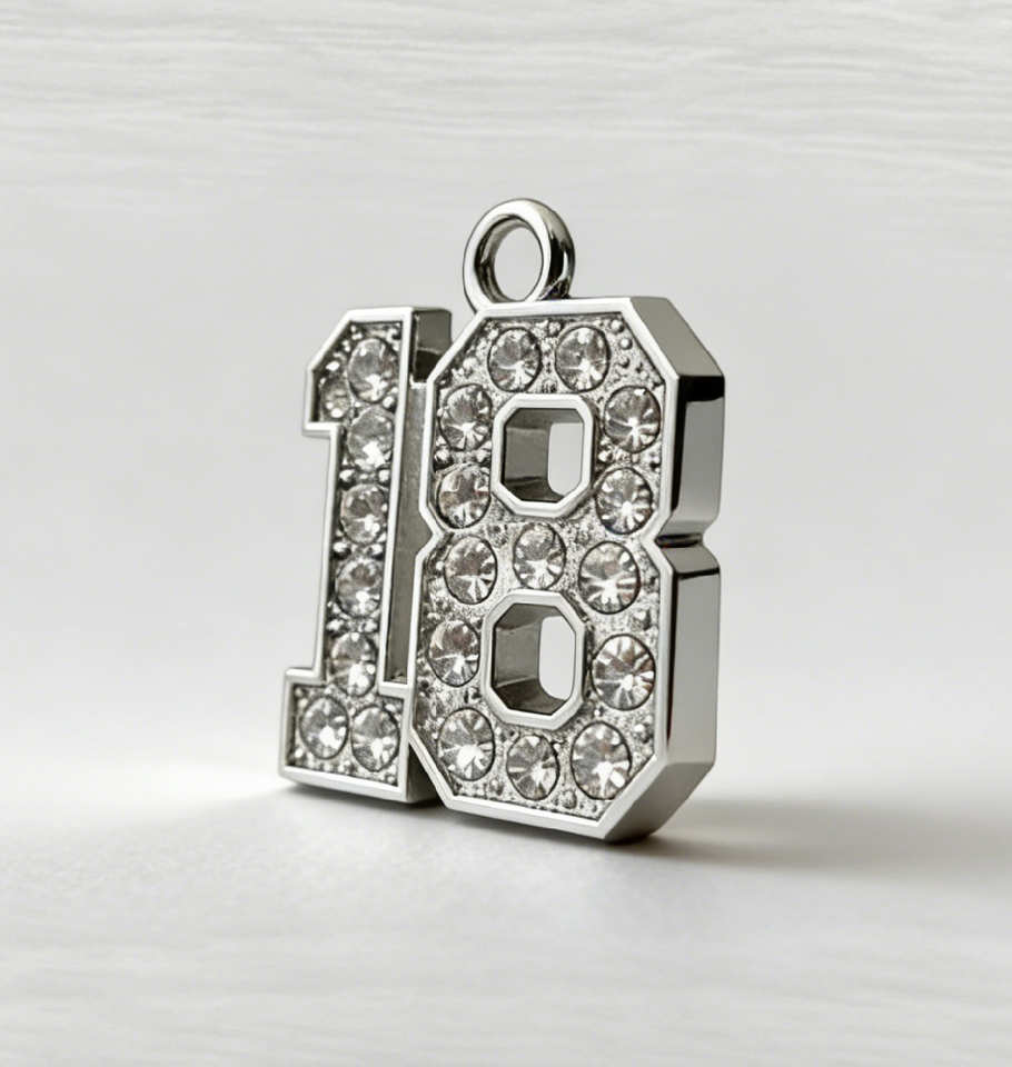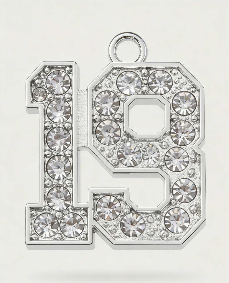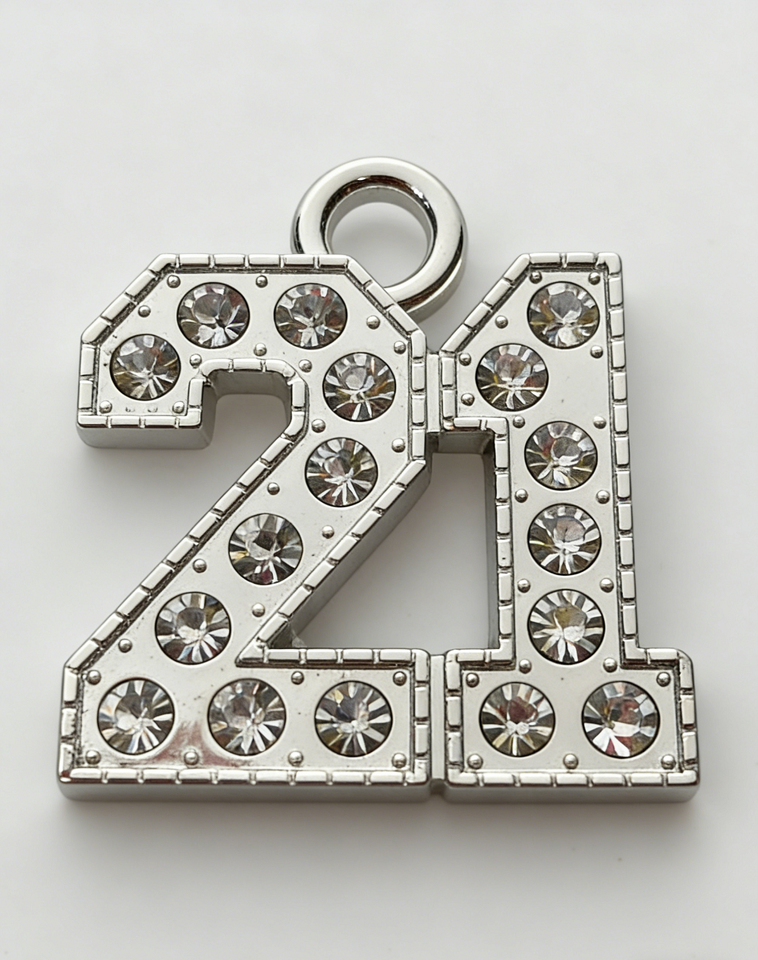 Breloques numérotées en métal personnalisées avec strass - Pendentifs numérotés en acier inoxydable argenté pour bijoux DIY/cadeaux d'anniversaire/diplôme