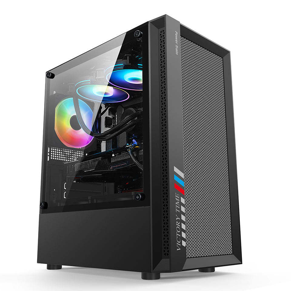 Shenzhen Tianfeng Boîtier PC métal mATX/Mini-ITX gaming, fenêtre latérale, USB3.0, alim. ATX, ventil. 120/240 mm, blanc/noir