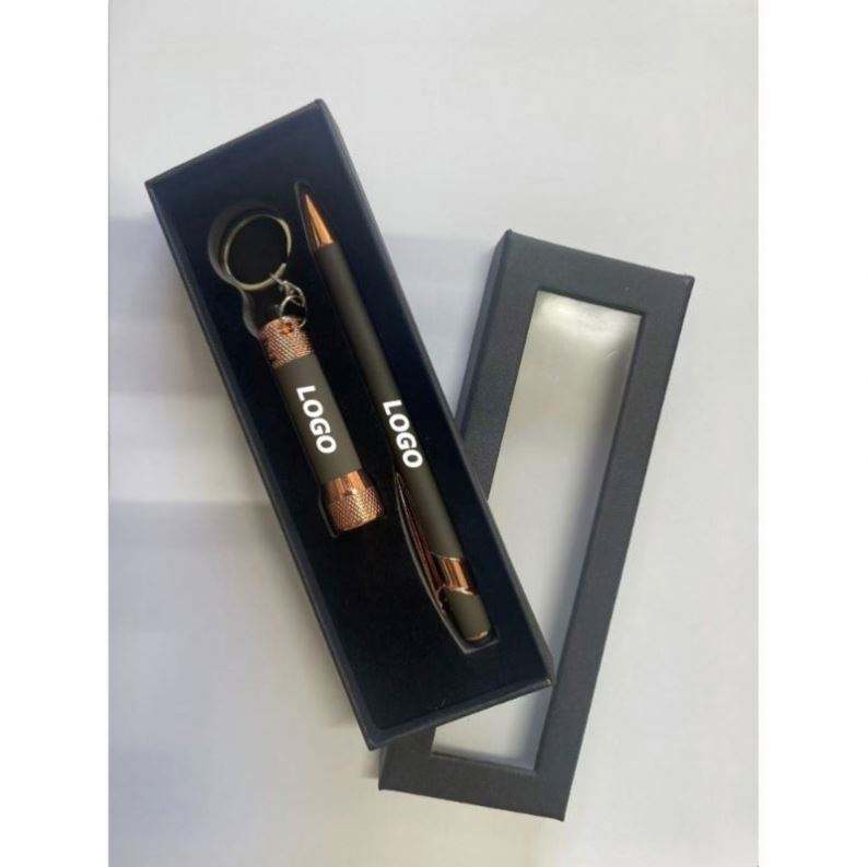 Ensemble cadeau stylo en métal personnalisé et mini lampe torche durable - Personnalisé avec votre logo