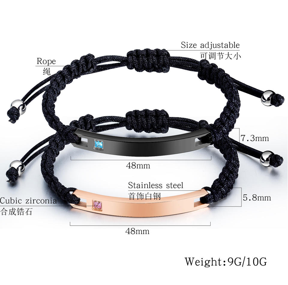 Bracelet personnalisé avec logo gravé en plaque métallique, corde ajustable, pour couple, fait à la main, 2 pièces