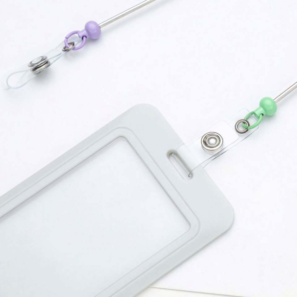 Porte-badge rétractable en métal personnalisé avec cordon perlé et porte-clés - Support de carte d'identité DIY pour infirmières et professionnels