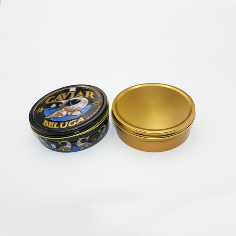 Boîte ronde en métal personnalisée pour emballage alimentaire 100G 250G Boîte à caviar vide