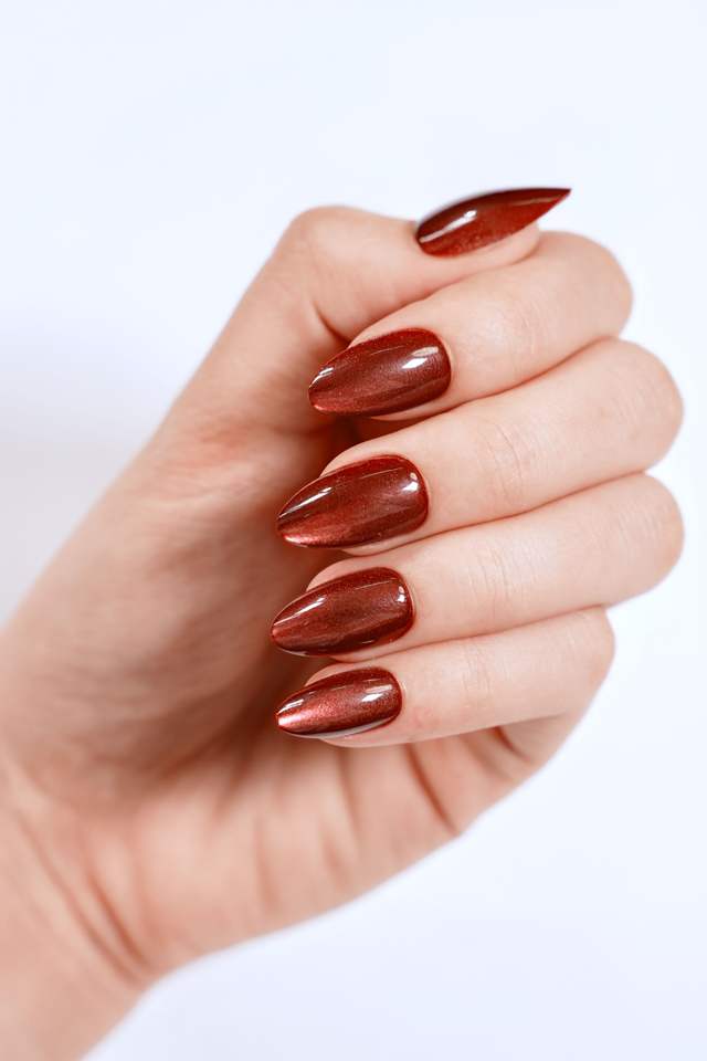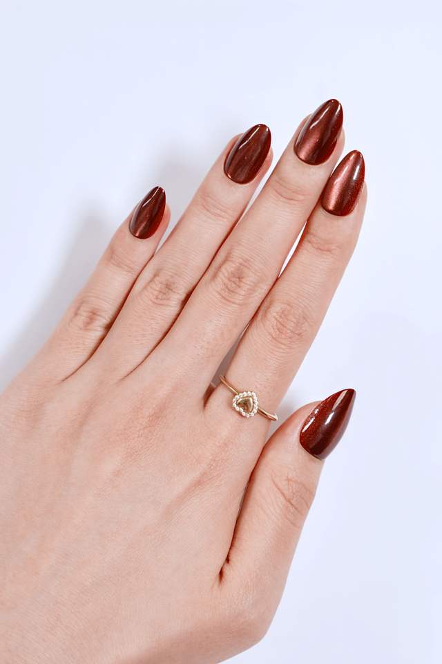 Faux ongles en forme d'amande œil de chat, fabrication OEM ODM, sur mesure, métalliques, en gros, faux ongles artificiels chromés cuivrés à presser
