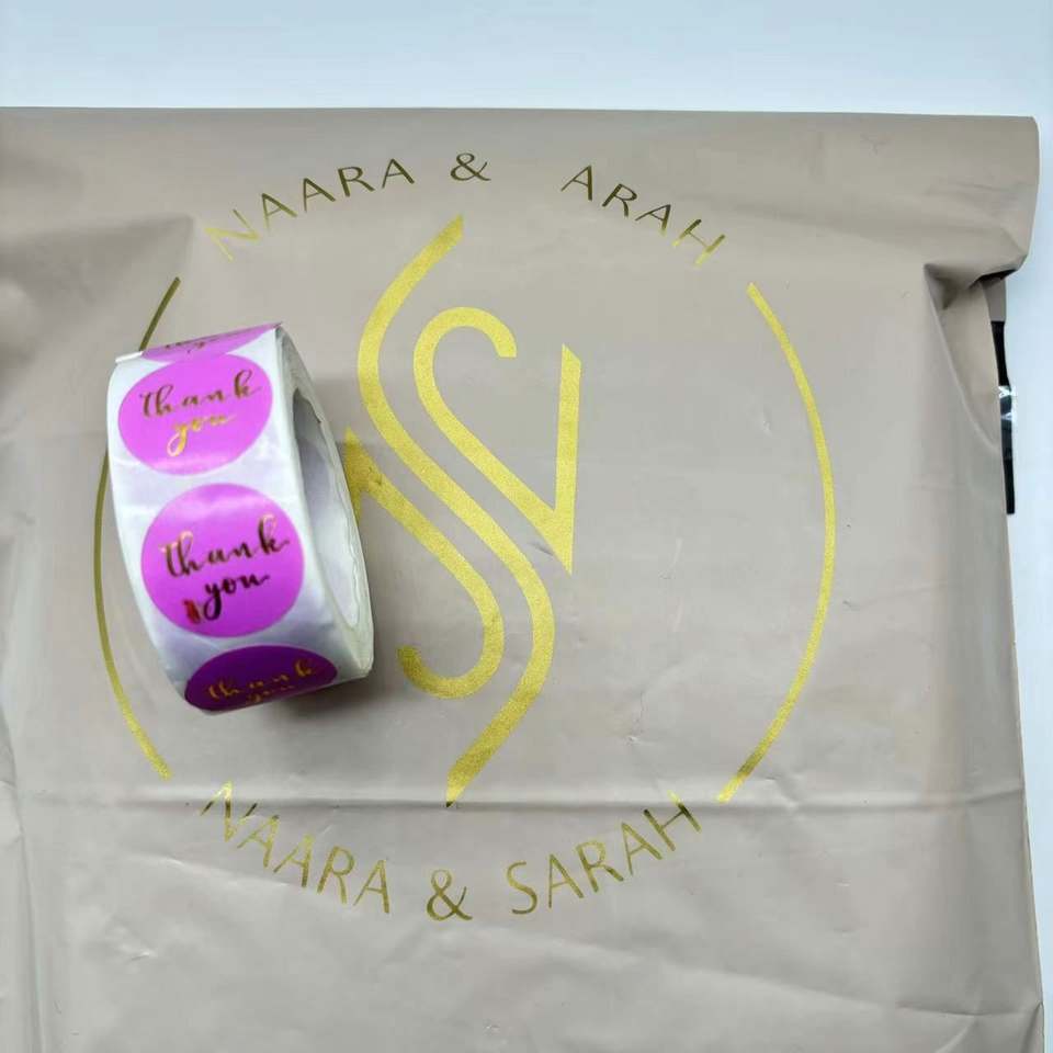 Sacs d'expédition en polymaille biodégradable beige mat avec logo personnalisé en or métallique, sacs d'expédition nude
