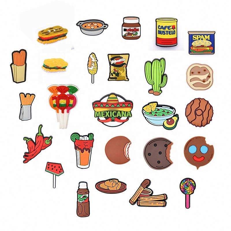 Breloque de chaussure mexicaine personnalisée, nouvelle tendance 2025, breloque pour sabot en PVC souple, breloques personnalisées pour sabot pour enfant, motif dessin animé, couleur, caractéristique, type