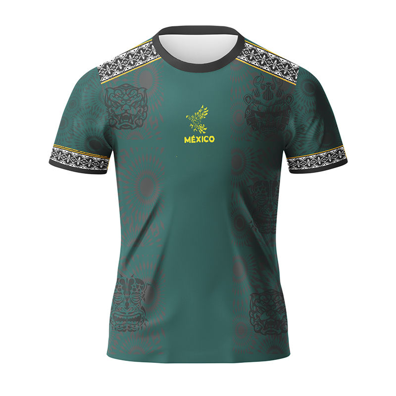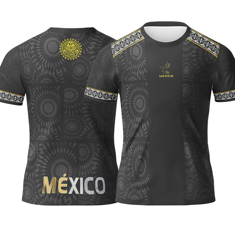 Maillot de football personnalisé Mexique, broderie et impression par transfert thermique, haute qualité, manches courtes, design noir et or, pour joueurs d'équipe