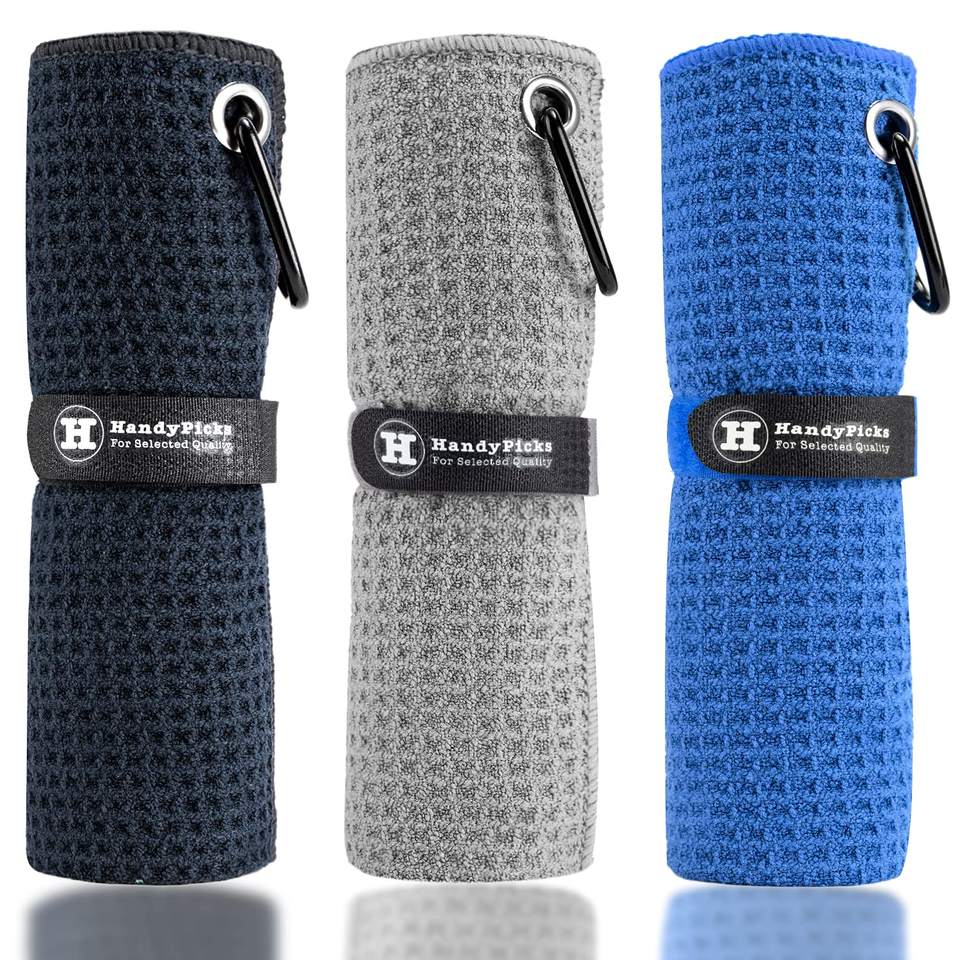 Serviette de golf personnalisée en microfibre avec mousqueton, motif gaufré, fixation auto-agrippante, serviette de nettoyage de golf pratique