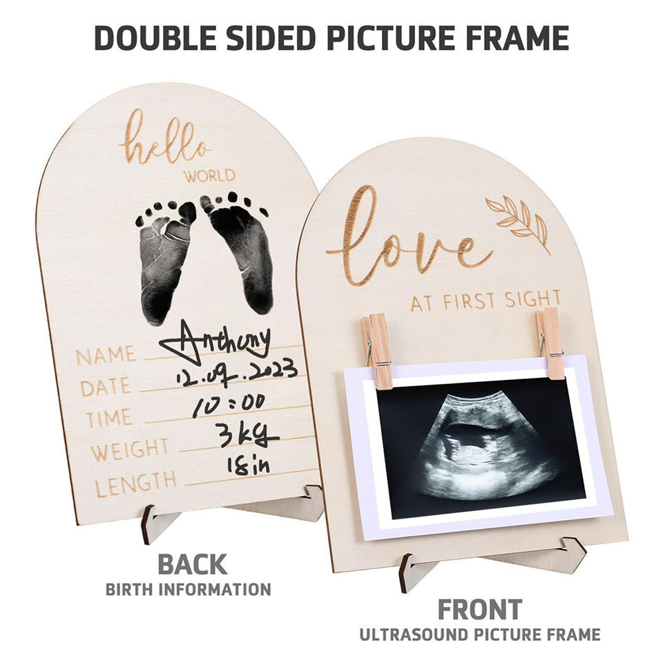 Cadre photo avec échographie pour nouveau-né jalon de croissance en bois souvenir jalon personnalisé pour les nouvelles mamans