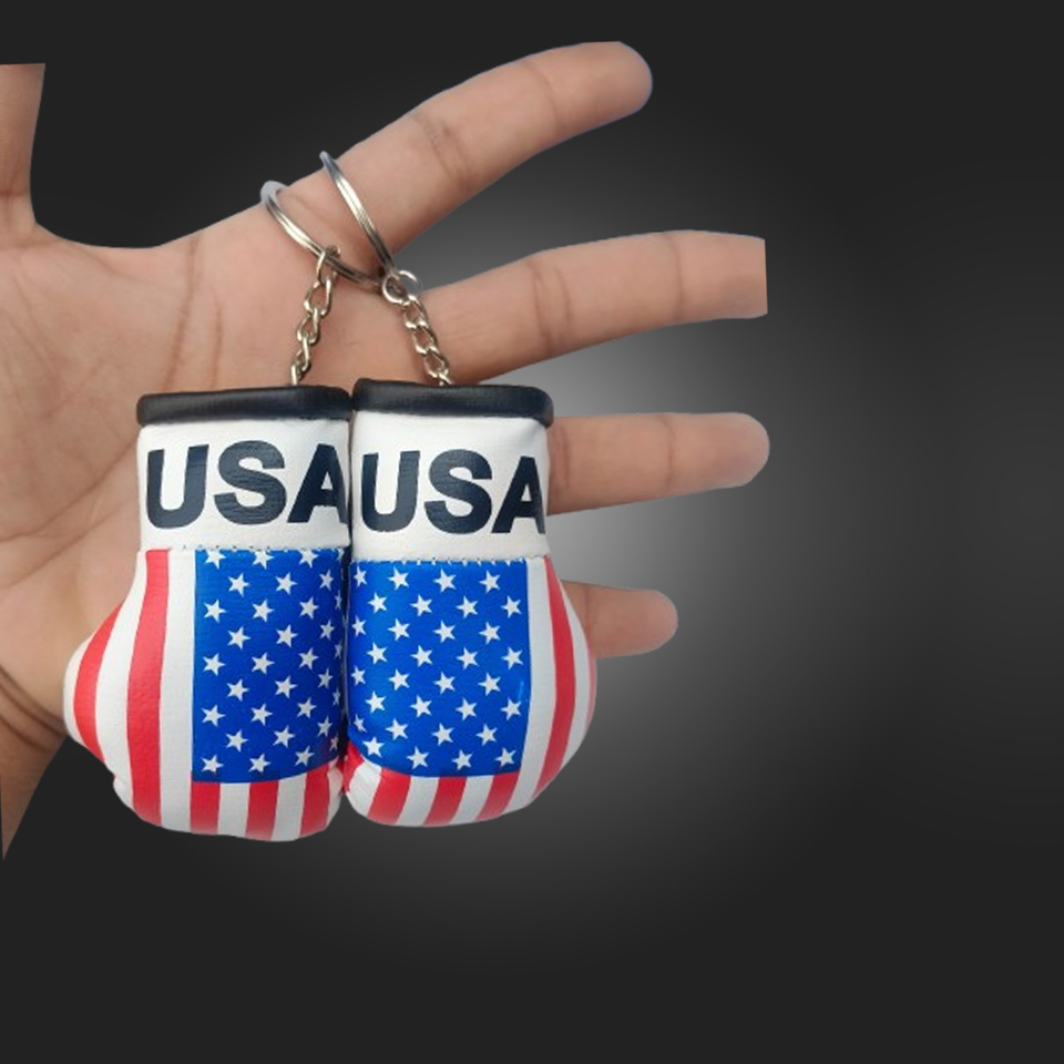 Mini gant de boxe en cuir PU personnalisé de haute qualité porte-clés avec poignet lacé drapeau du pays américain pour porte-clés et affichage du Logo