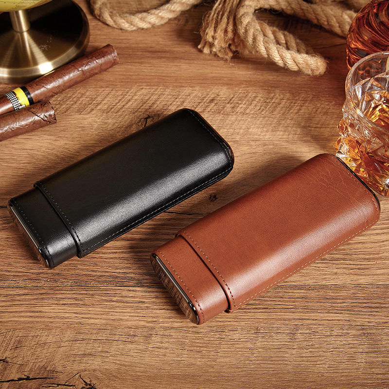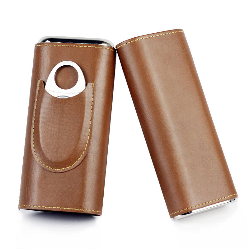 Mini étui à cigares portable en cuir PU personnalisé avec 3 porte-tubes Boîte à cigares de voyage de luxe Accessoires Accessoire facile à emporter