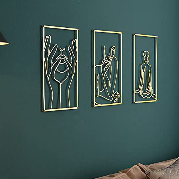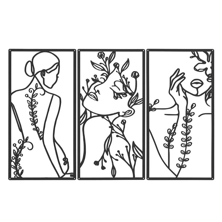 Imprimés d'art de ligne minimaliste en métal moderne abstrait en forme de corps de femme décor mural ensemble peinture d'art Murale décoration 3d
