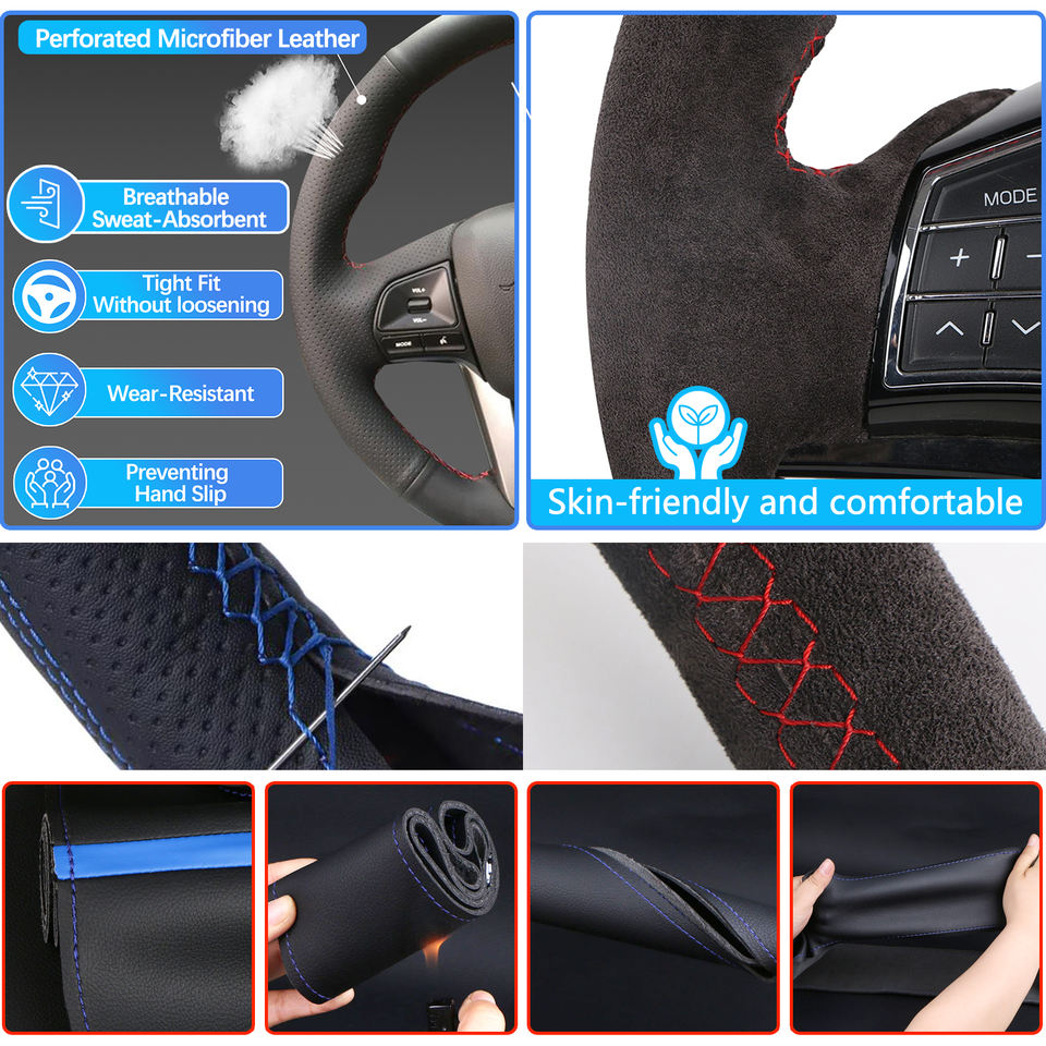 Modèle personnalisé 38CM couverture de volant de voiture en cuir microfibre point à la main pour Citroen C5 X C5X 2021 2022