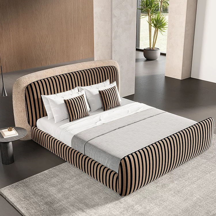 Lit moderne personnalisé pour chambre à coucher, élégant, en bois brun et en métal