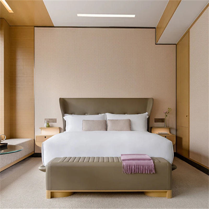 Lit d'hôtel en bois au design moderne personnalisé avec panneau en métal pour la chambre à coucher ou l'appartement de villas Comfort Inn Holiday Inn Express
