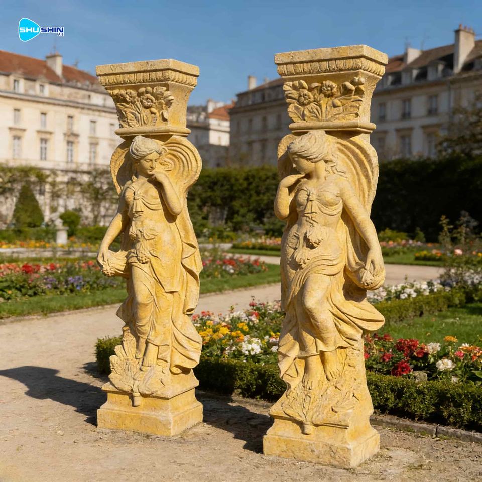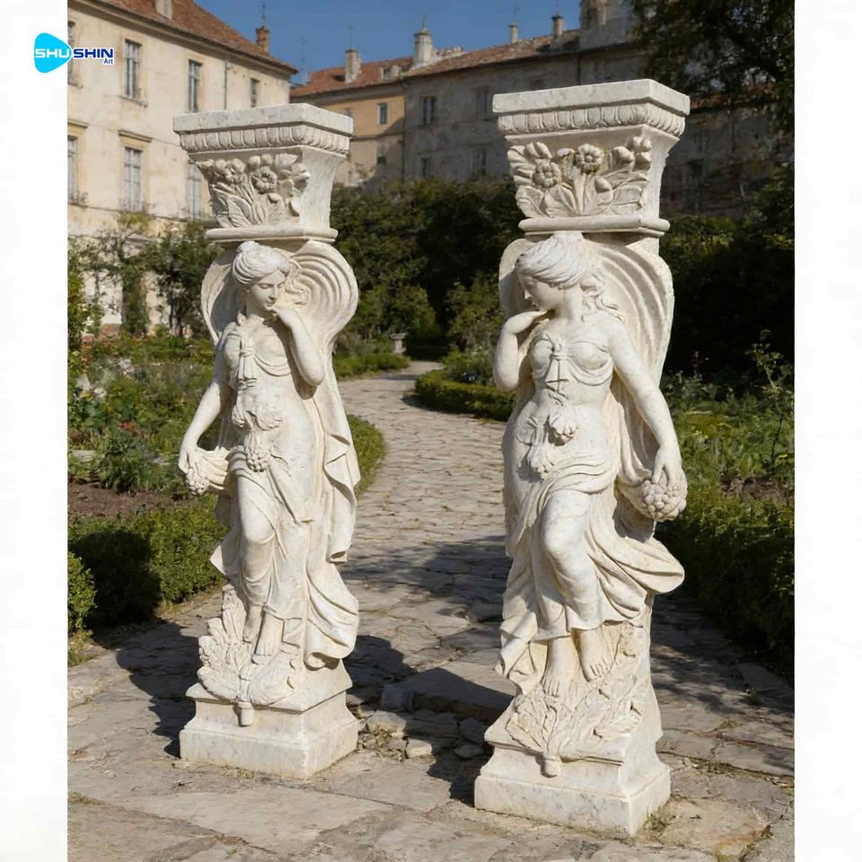 Statues de Dames Romaines en Pierre Carrée, Style Européen Moderne, pour Décoration de Jardin Extérieur, Sculpture de Piliers Creux en Marbre Massif