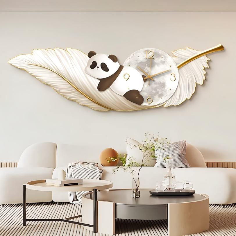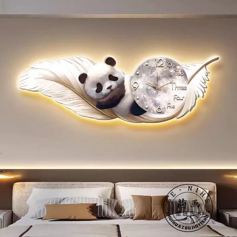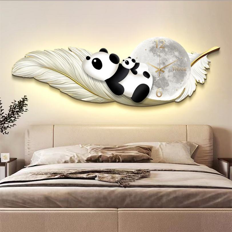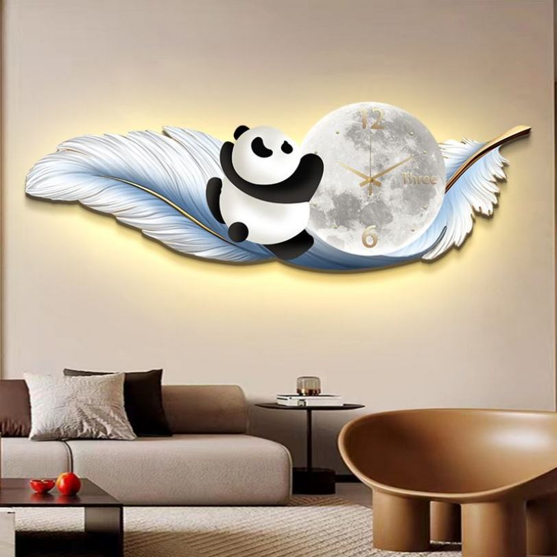Peinture murale LED de luxe moderne en forme de plume avec horloge intégrée pour décoration murale de salon