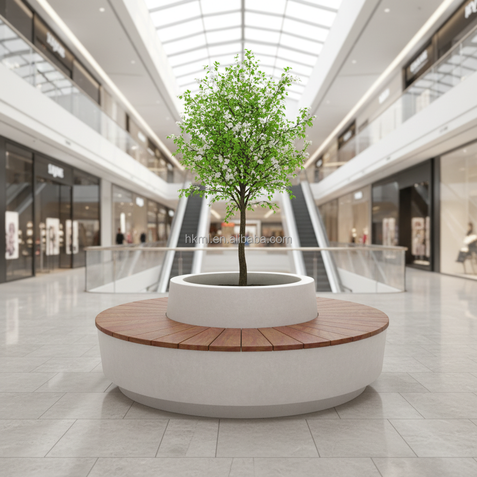 Nom du produit:Banc rond avec entourage d'arbre en GRC et assise en teck