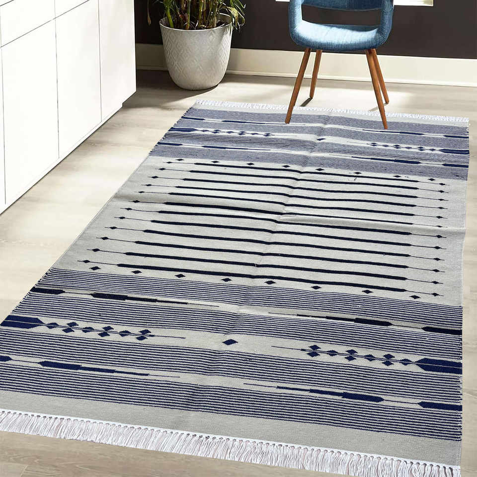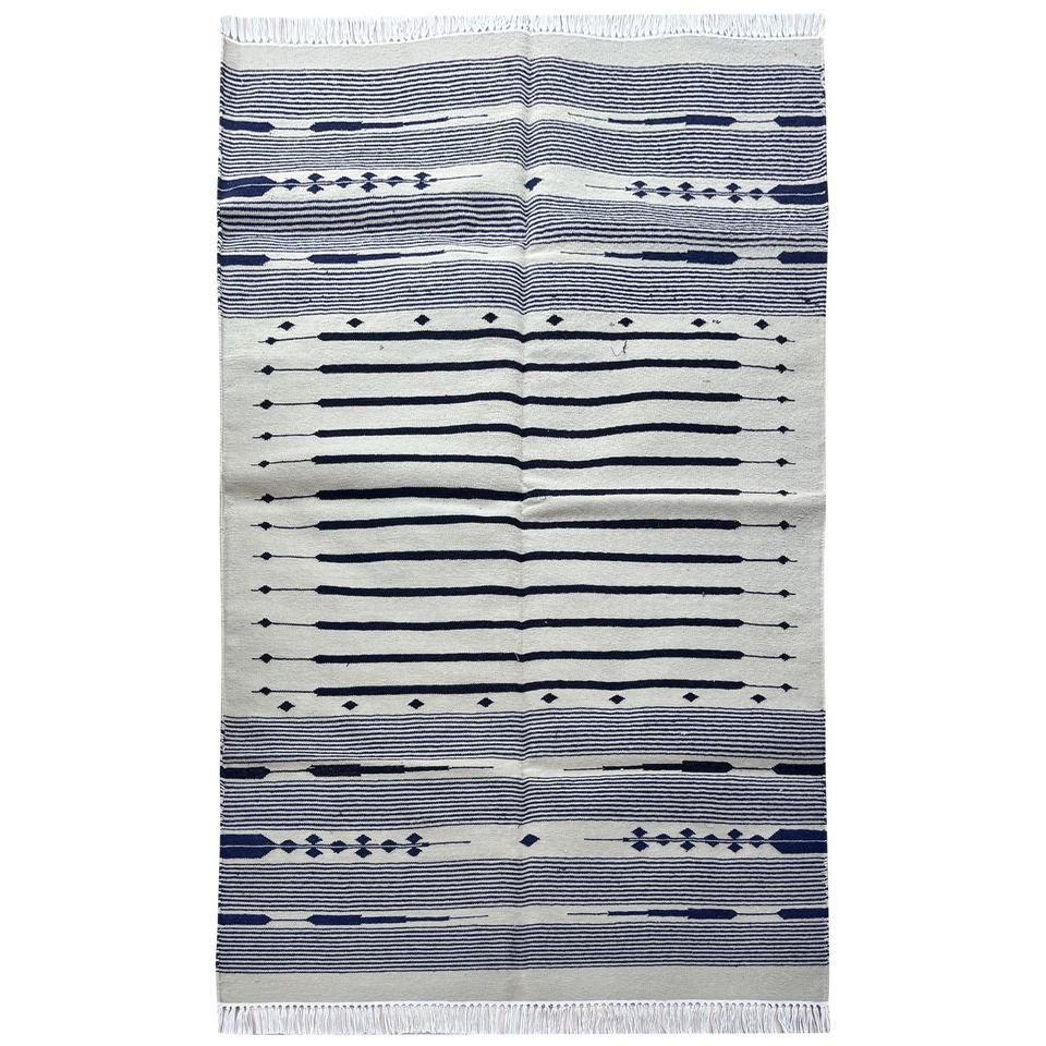 Tapis artisanal moderne beige uni, tissage plat, infroissable, antidérapant, en coton indien naturel teint aux plantes, sur mesure
