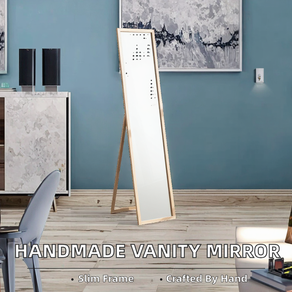 Miroir mural de courtoisie vertical surdimensionné fait à la main moderne rectangulaire en bois, écologique et incassable