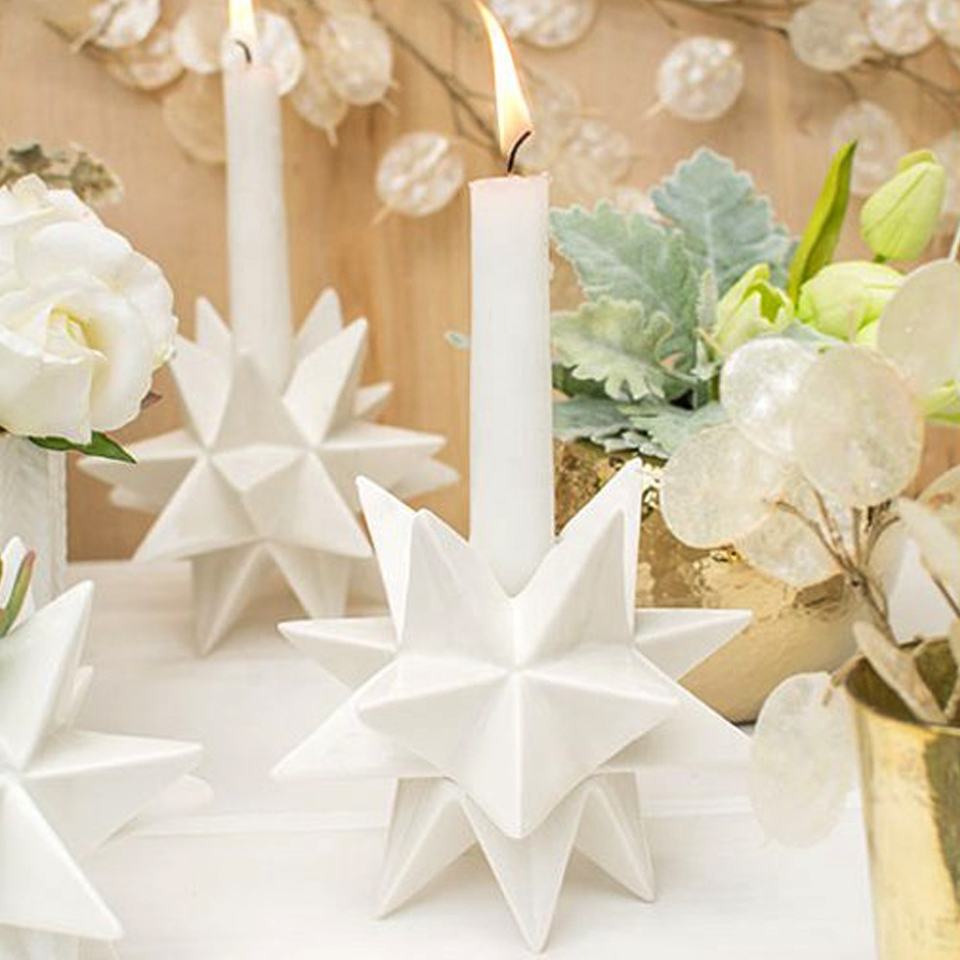 Décoration moderne personnalisée en origami en porcelaine pour maison petite cible étoile conique bougeoir en céramique starburst bougeoir