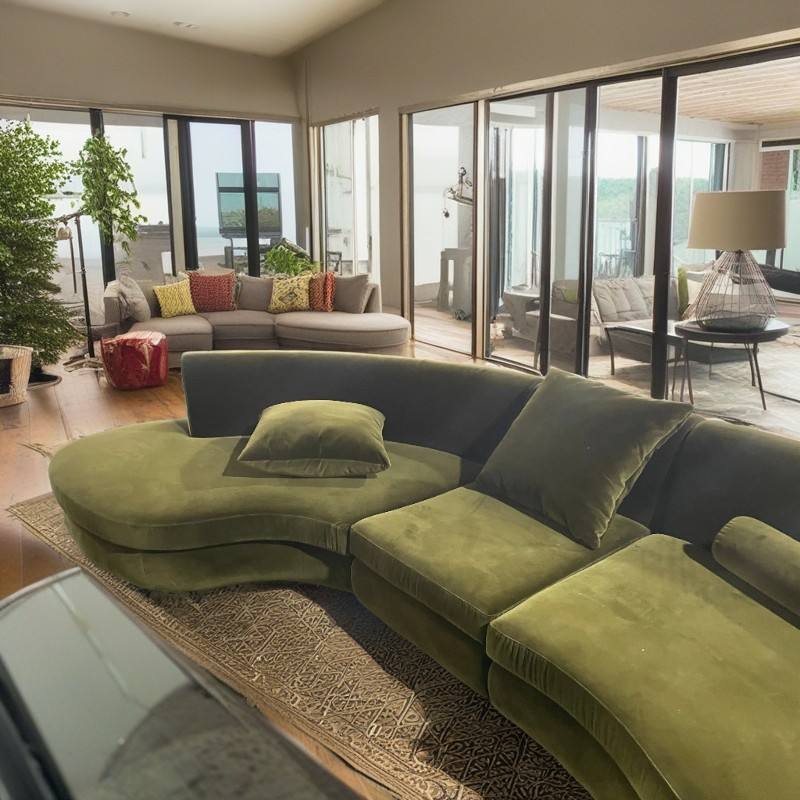 Canapé d'angle moderne en tissu velours au design italien courbé personnalisé pour appartement ou hôtel