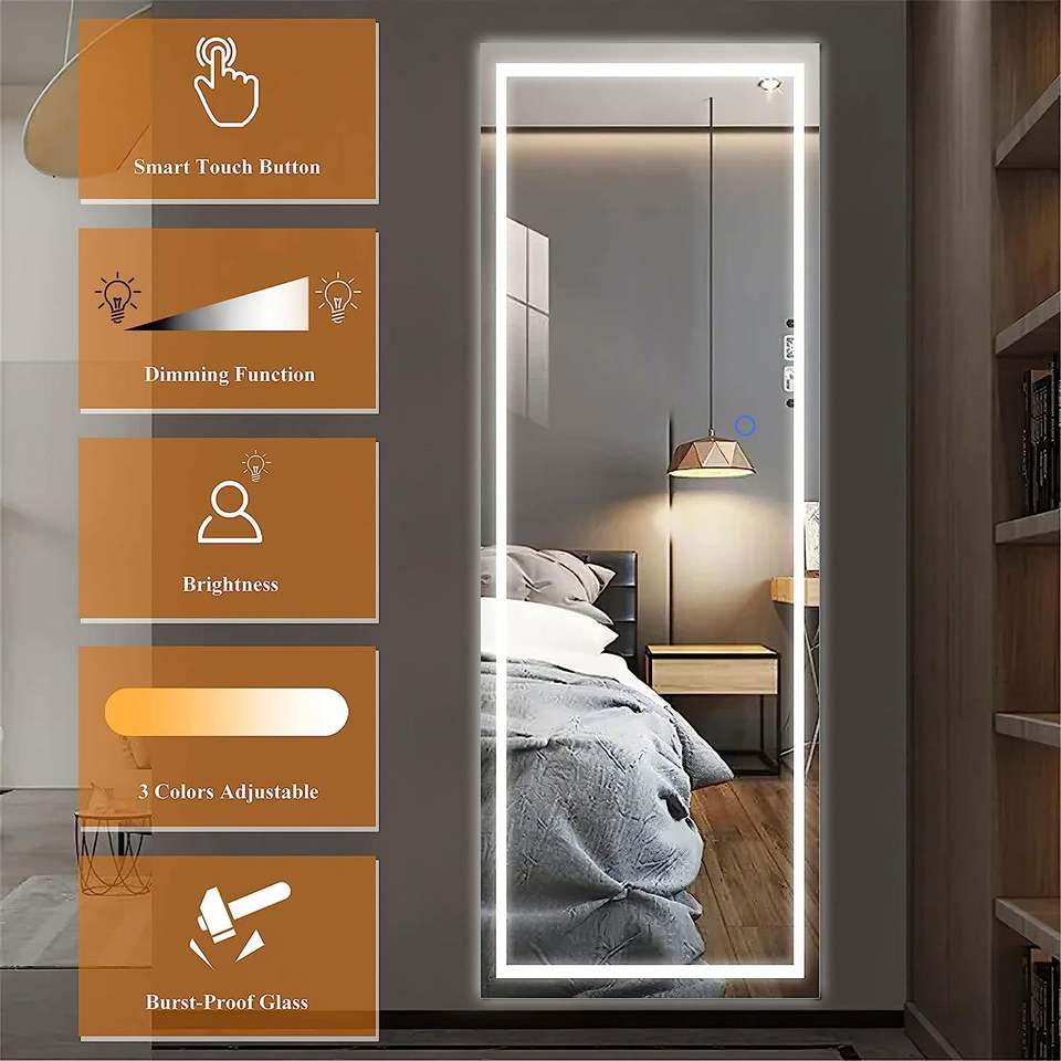 Miroir mural décoratif de grande taille moderne à LED personnalisé pour la salle de bain, la chambre à coucher, le salon, la salle de maquillage