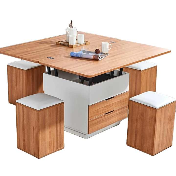 Table à café/salle à manger extensible pliable multifonction moderne personnalisée avec 4 tabourets en verre trempé pour ensembles de meubles de maison