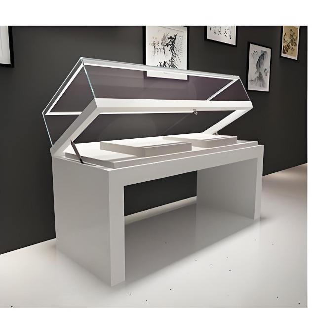 Conception de vitrine de musée moderne personnalisée Couvercle en verre coudé à 45 degrés Éclairage LED Vitrines de table pour expositions