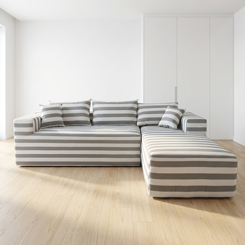 Canapé Modulaire Extérieur Moderne Personnalisé à Rayures, en Mousse Compressée, Imperméable, pour Salon, Balcon ou Salle de Sport