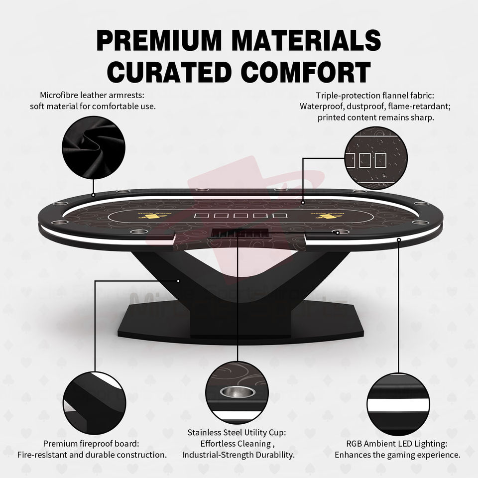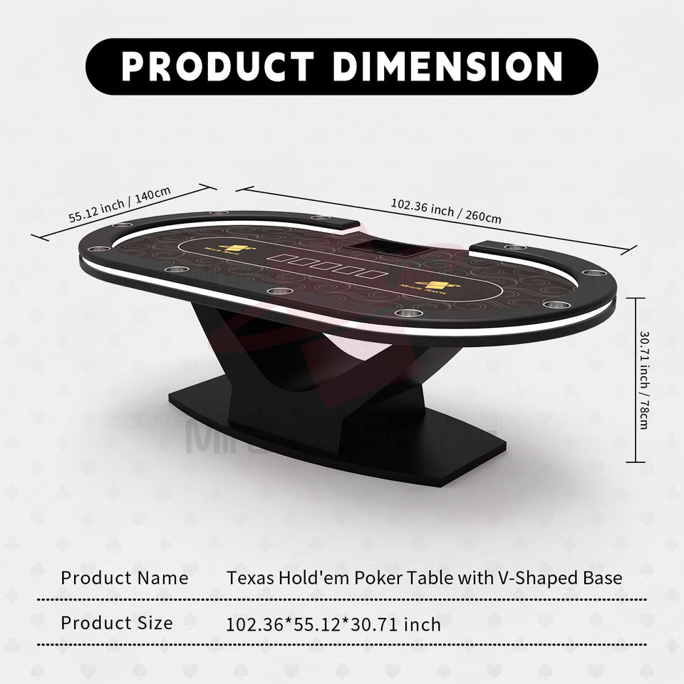 Table de poker Texas personnalisée à 10 joueurs avec LED Nouveau design Table de jeu en métal de luxe pour casino