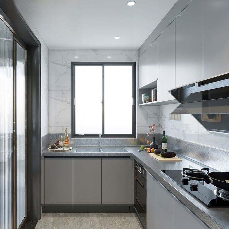 Meuble mural de rangement de style moderne personnalisé, structure en acier inoxydable, îlot de cuisine, table, finition laquée, style français scandinave minimaliste