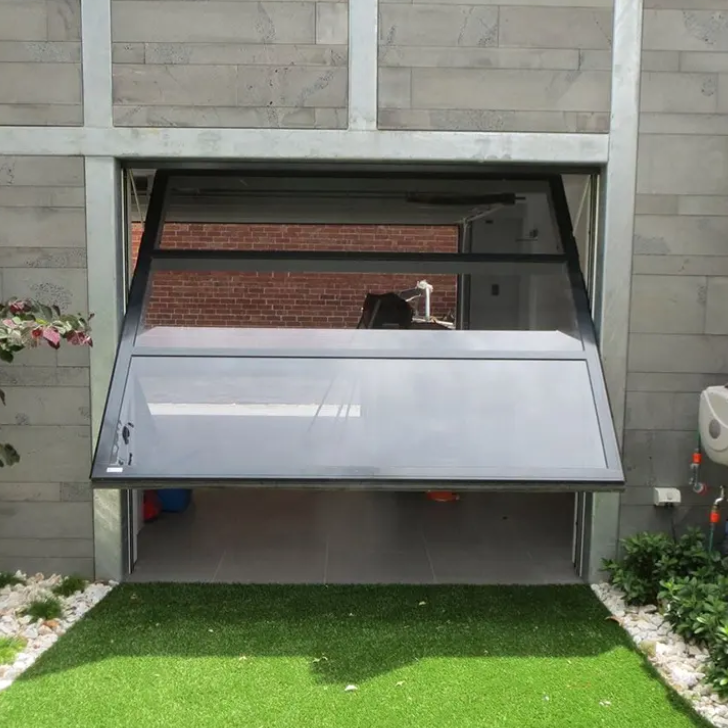 Porte de garage moderne inclinable personnalisée isolée motorisée au-dessus de la tête Plaque entière en verre sans rail personnalisée