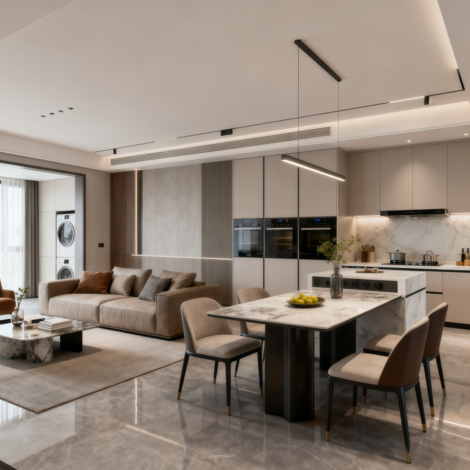 Cuisine et salon de villa moderne