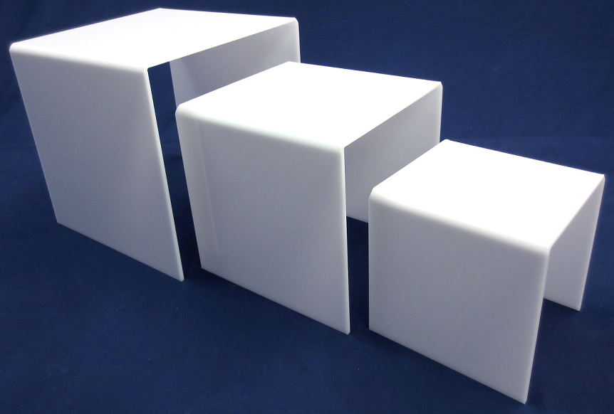 Custom white acrylic display cube riser, acrylic tabletop risers
