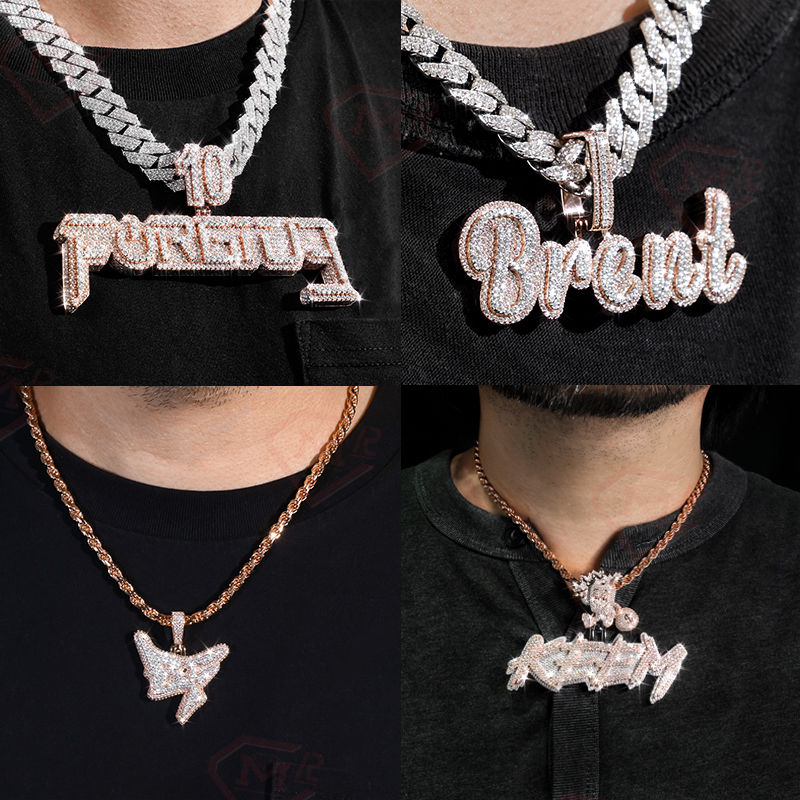 Pendentif Moissanite Personnalisé Homme, Bijoux Hip Hop Rappeur, Lettres en Diamant VVS1, Pendentif Moissanite Sur Mesure