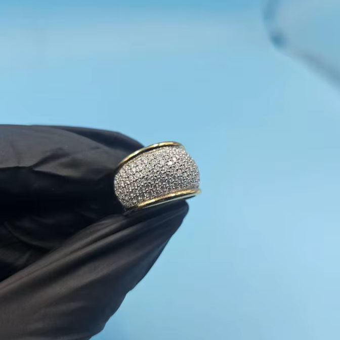 Bague Dôme Personnalisée en Moissanite Ronde Sertie Pavé, en Argent 925 Original, Bijou Homme Iced Out pour Fête, Charme, Cadeau pour Amis
