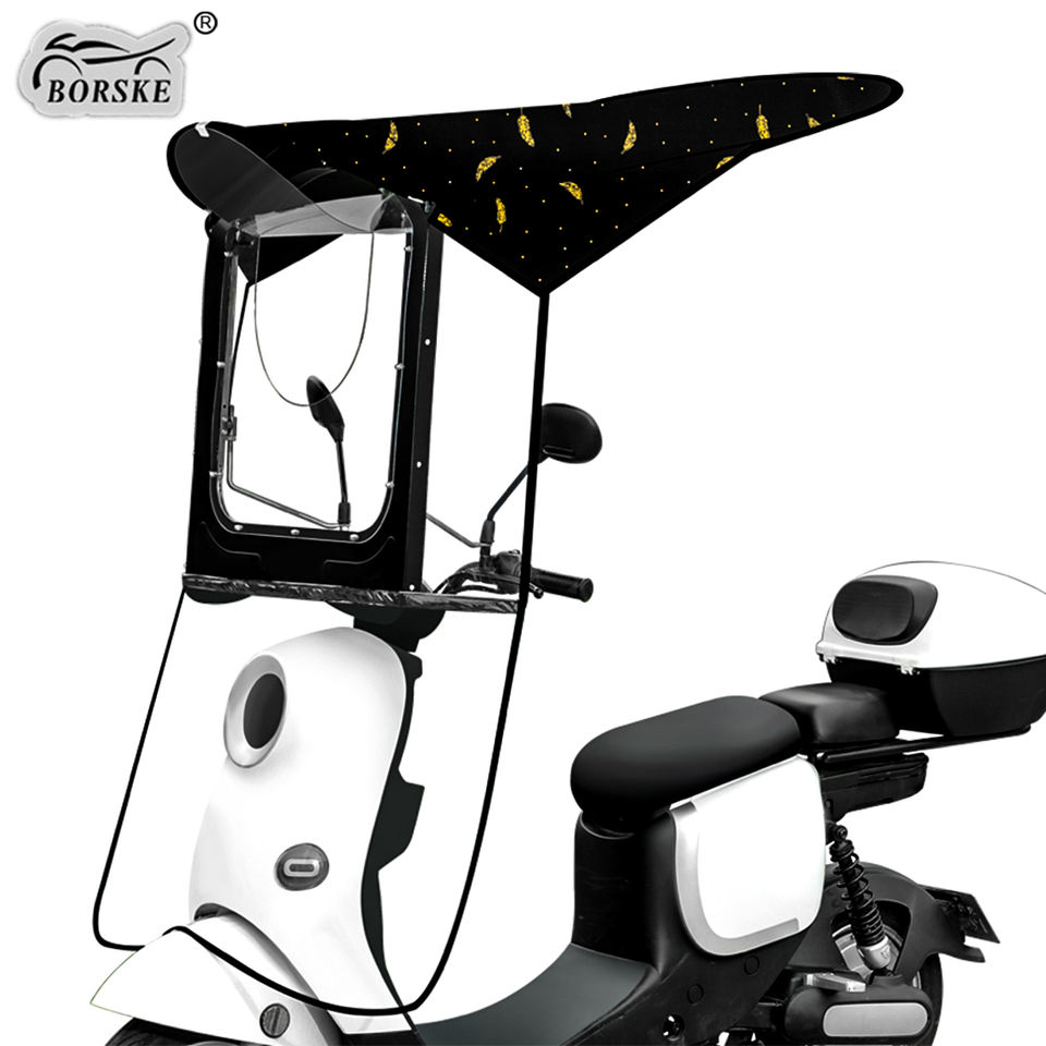 Parapluie personnalisé pour moto vélo électrique Scooter Parasol extérieur coupe-vent Queue d'aronde Revêtement noir Moteur Abri contre la pluie