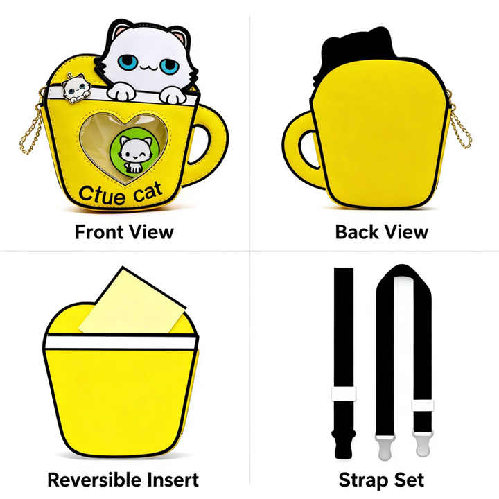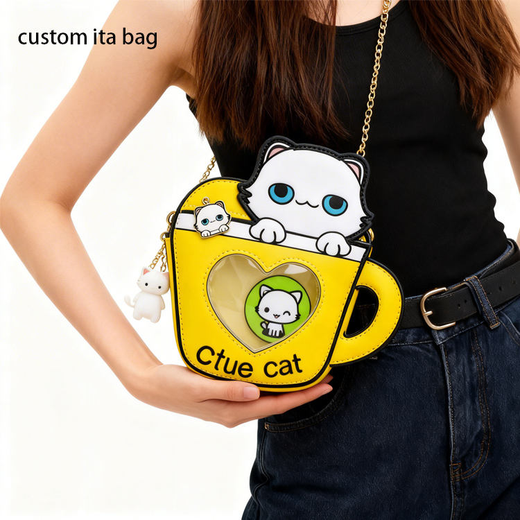Sac bandoulière en cuir PU avec chaîne, design chat 3D mignon, forme tasse personnalisée, pour fans d'anime