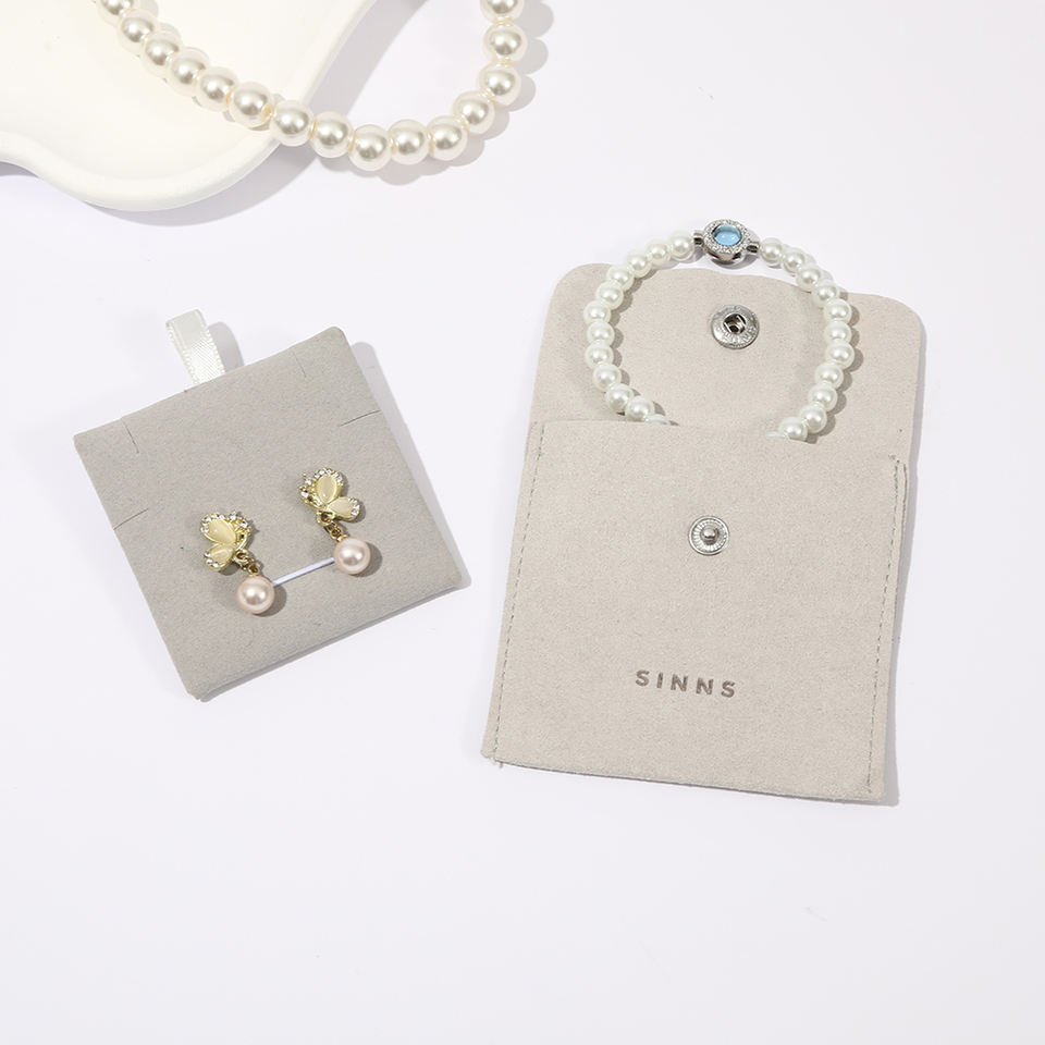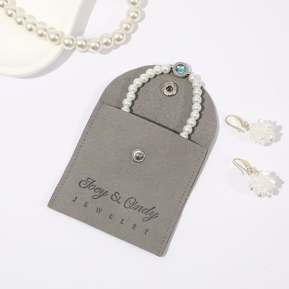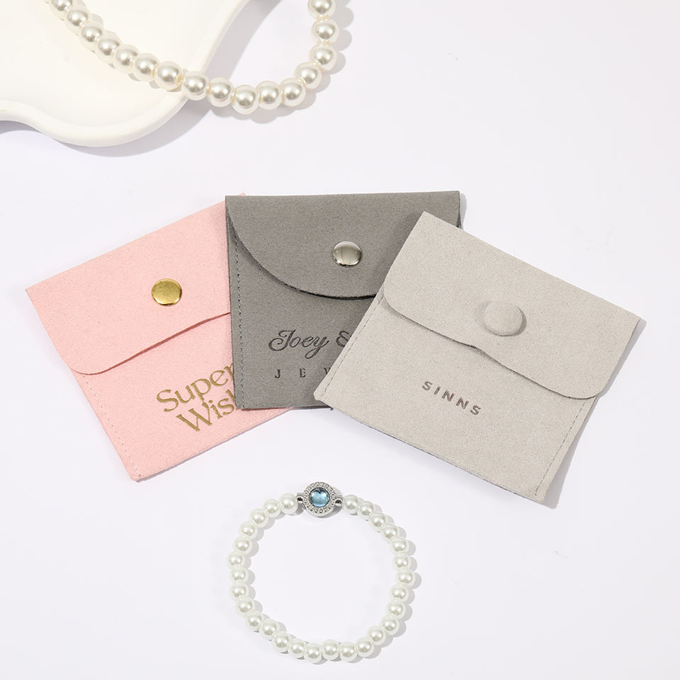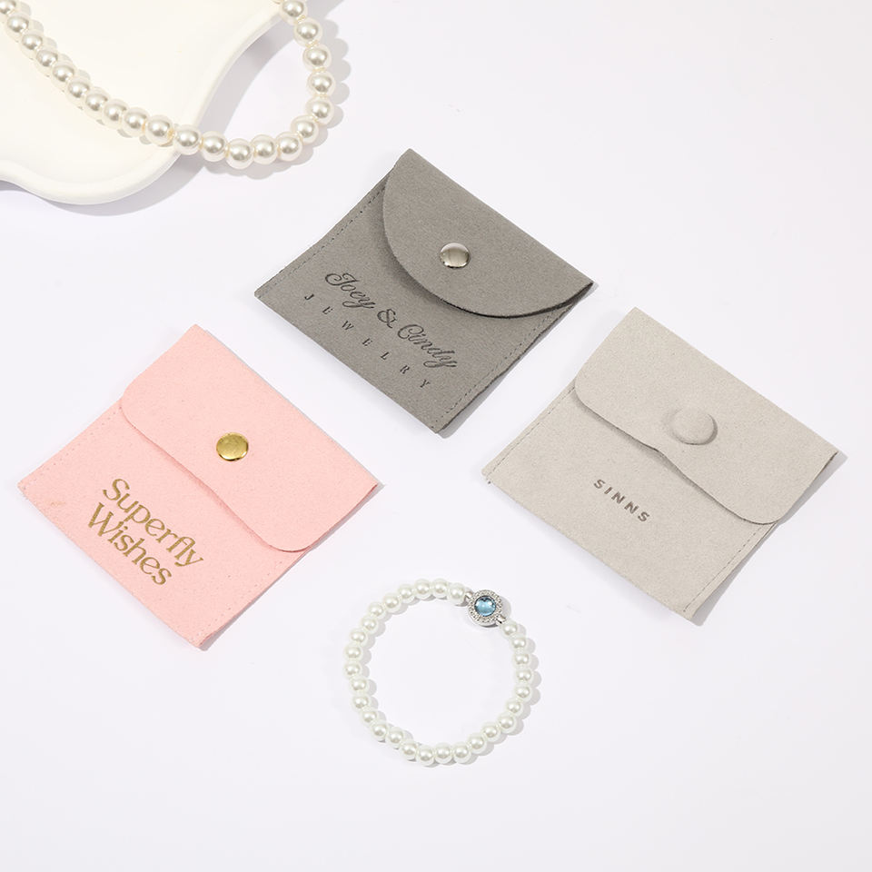 Pochette à bijoux en microfibre multicolores personnalisée avec bouton pression, sac enveloppe pour bagues, bracelets et colliers