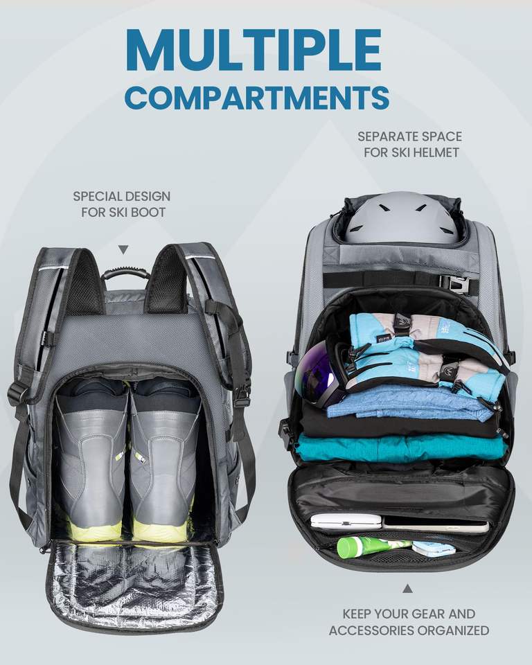 Sac à bottes de ski multifonctionnel personnalisé avec plusieurs poches, design imperméable et durable, certifié BSCI, 21x15.3x14.5 pouces
