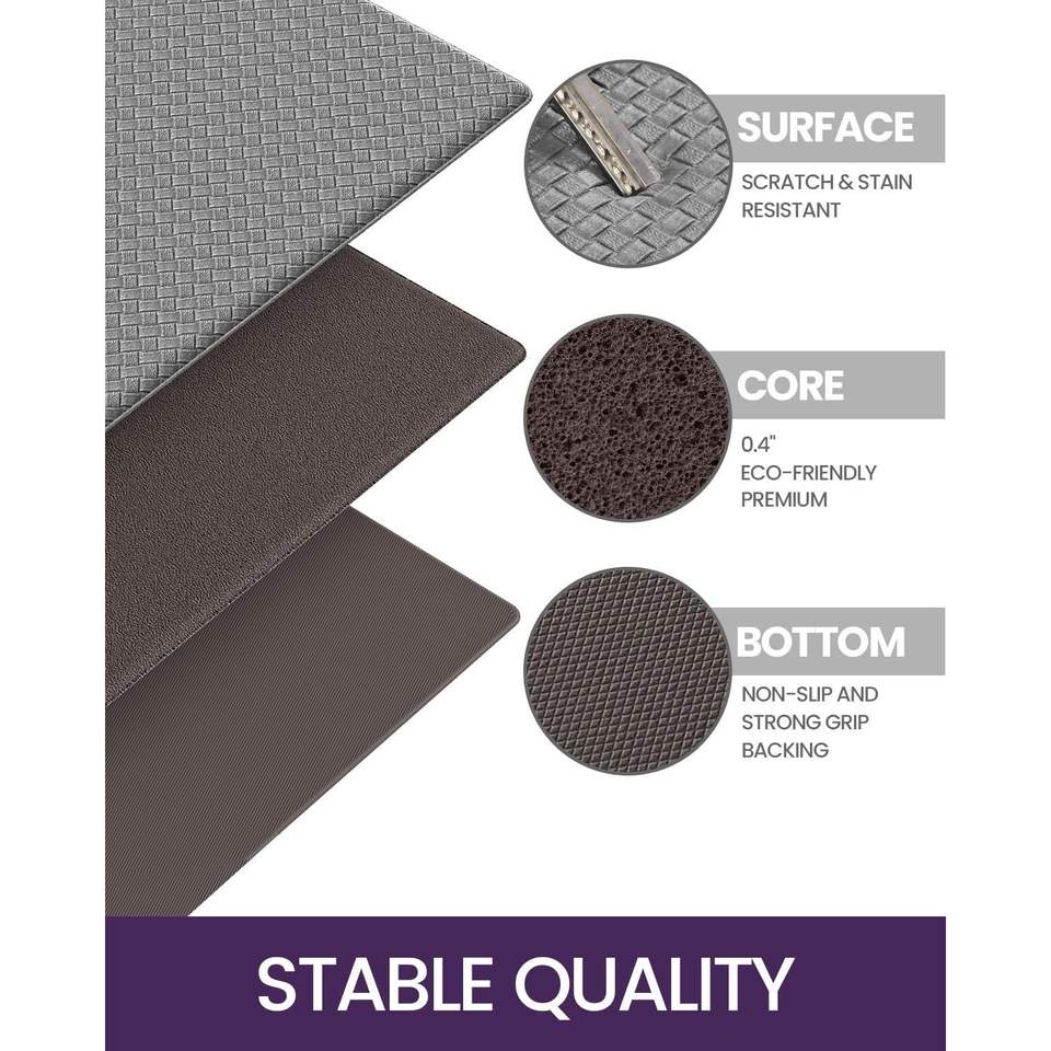 Tapis de sol anti-fatigue multicouche personnalisé en PVC, simili cuir, mousse SBR, style bohème, absorbant les chocs, ensemble de tapis de cuisine