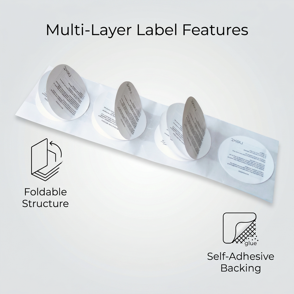 Étiquettes rondes multicouches pelables personnalisées ; Étiquettes d'information multi-pages