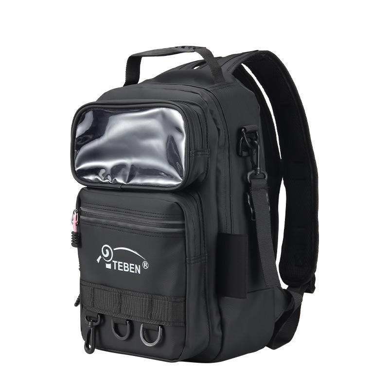 Sac à dos de pêche multifonctionnel personnalisé, imperméable, en polyester, sac à bandoulière, sac de ceinture, insertion de canne à pêche, rangement d'appâts de pêche