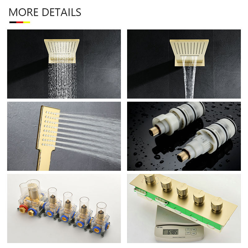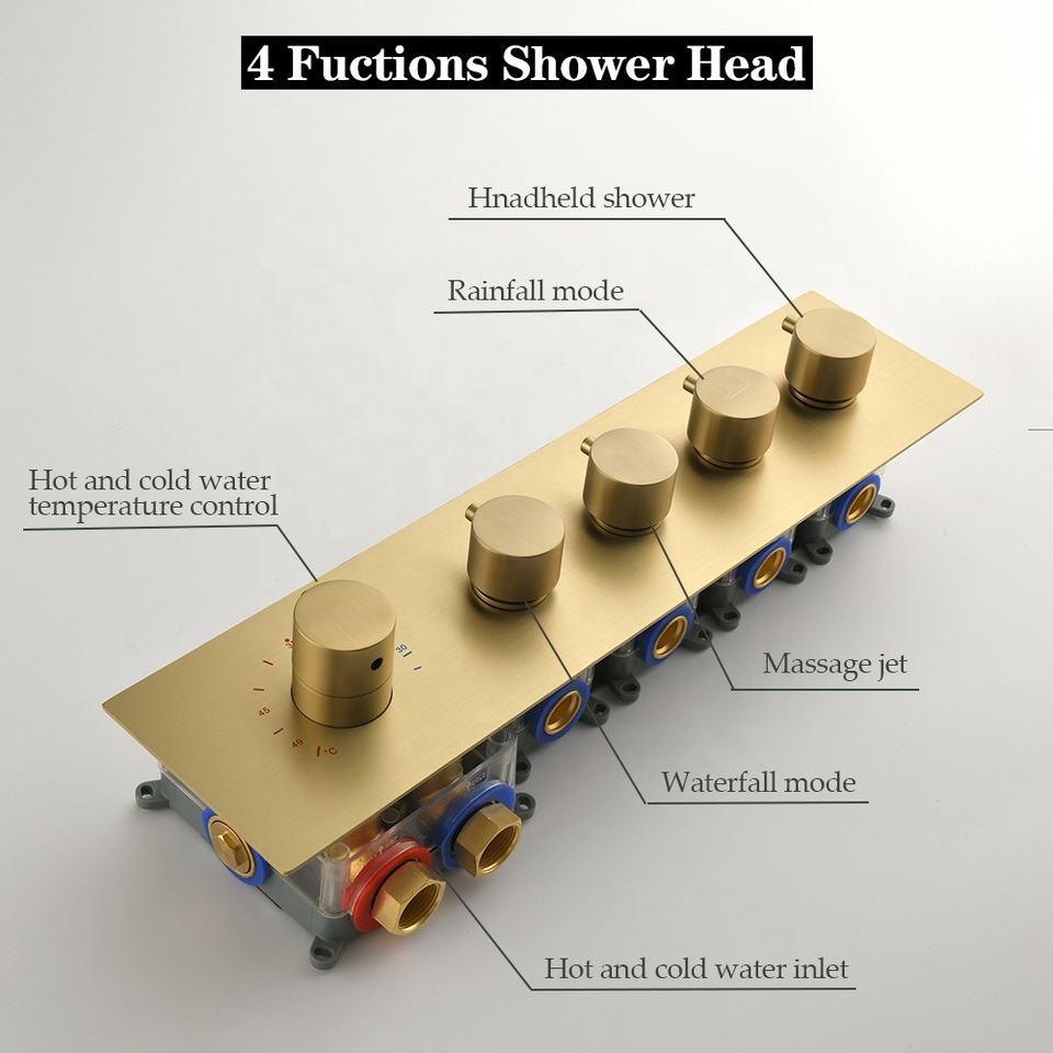 Mélangeur thermostatique:Vanne 5 + 1 haut débit, laiton brossé or