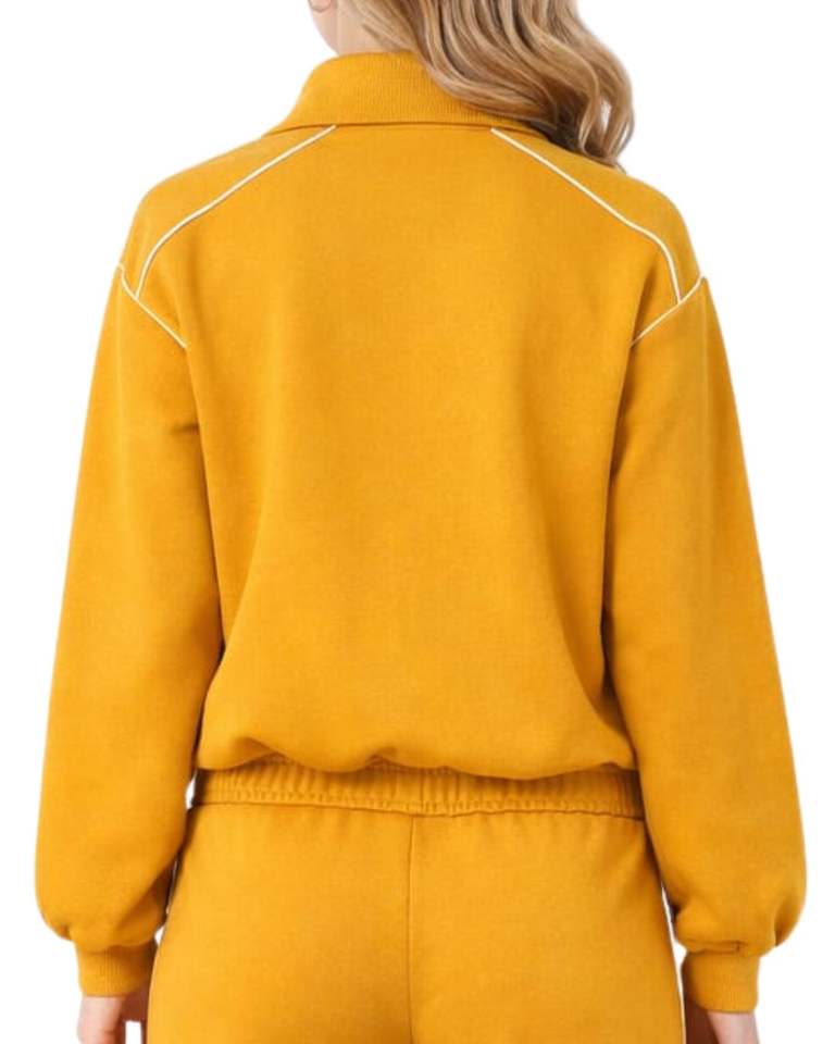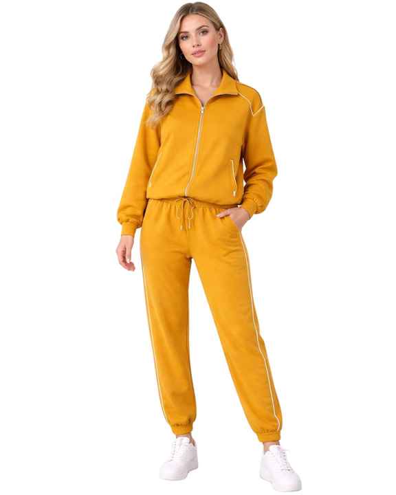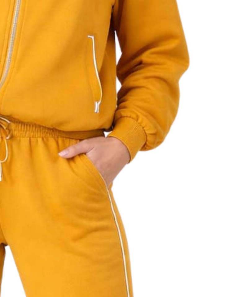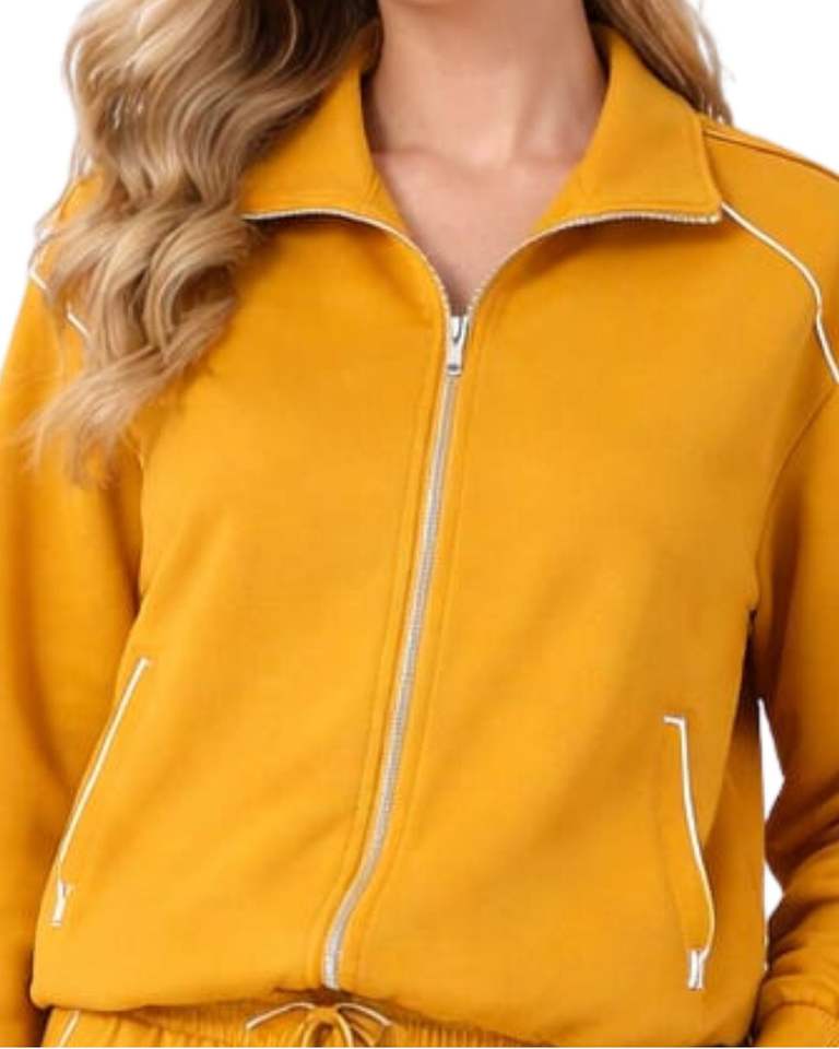 Ensemble de survêtement jaune moutarde personnalisé pour femme, veste zippée en mélange de coton et pantalon de jogging, tenue décontractée et sportive deux pièces