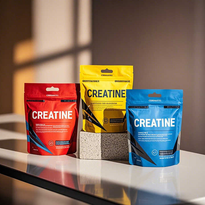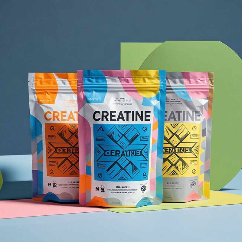 Sac en MylarPlastic personnalisé pour poudre de protéines de lactosérum, supplément, fermeture éclair, debout, emballage de 1 kg, sachet de créatine