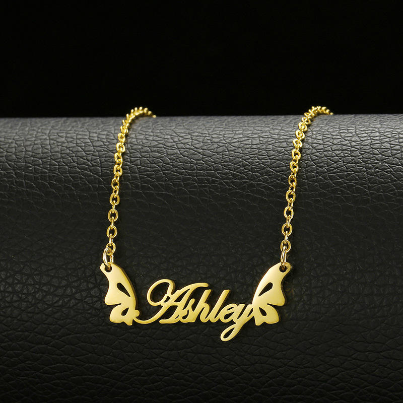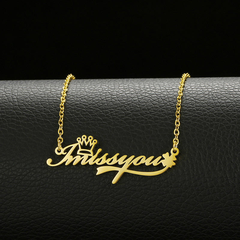 Collier ras-du-cou en acier inoxydable, chaîne dorée avec plaque nominative personnalisée pour bébé/fille — 1 pièce