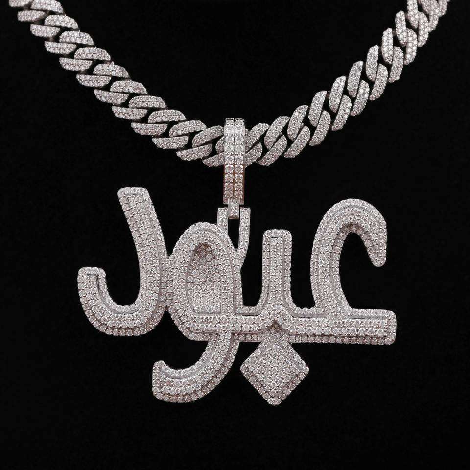 Pendentif Lettre Personnalisée Hip Hop en Argent Sterling Plaqué Or avec Micro-Pavé Moissanite et Chaîne de Luxe pour Homme