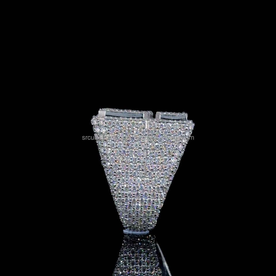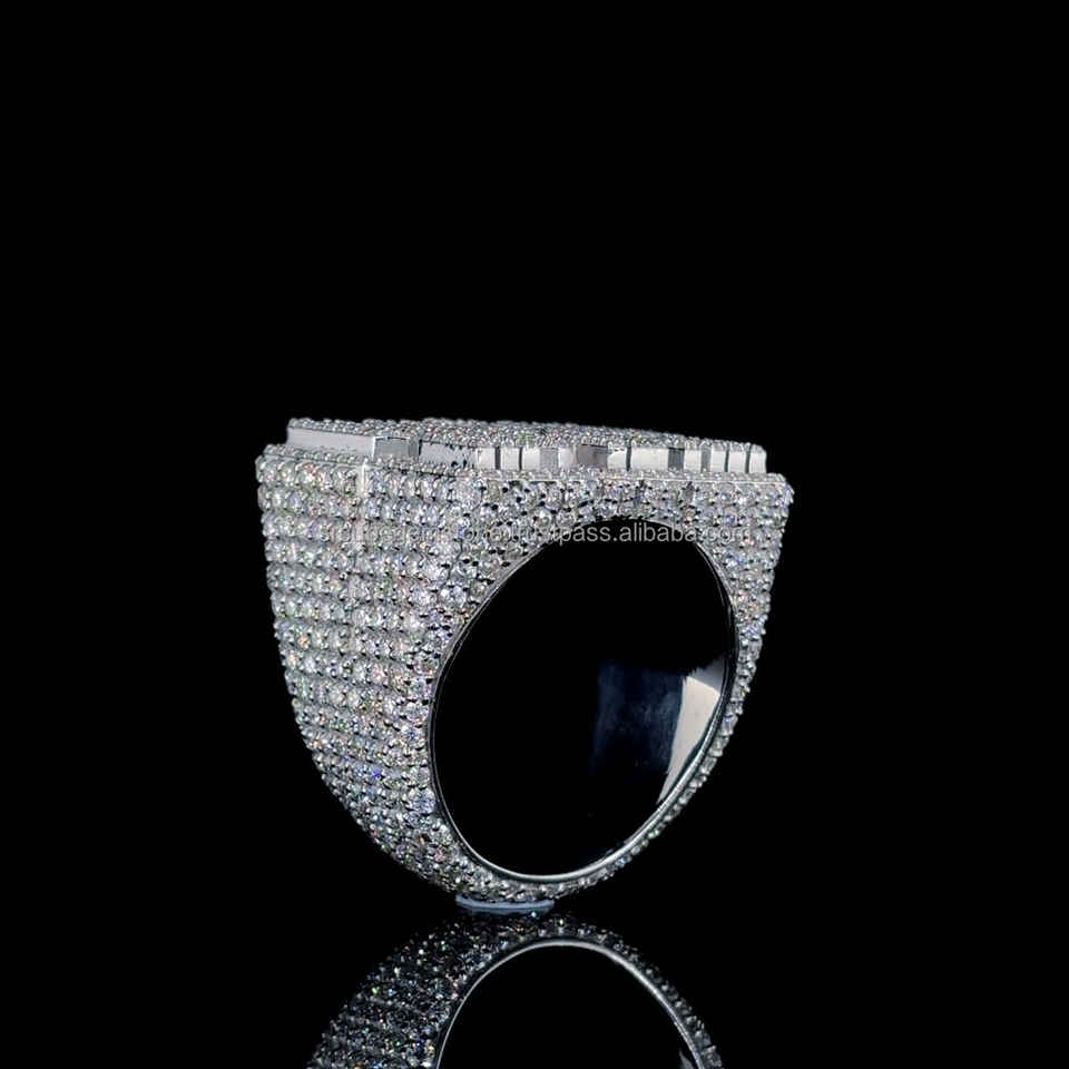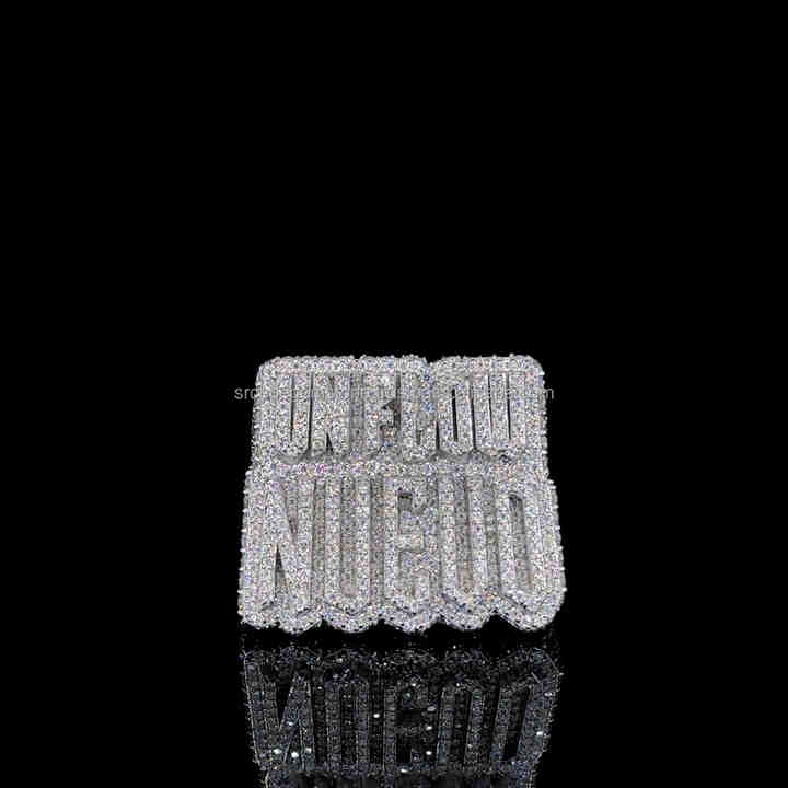 Bague personnalisée double couche hip-hop entièrement sertie de diamants avec nom et numéro, bijou en argent sterling pour femme, certifié IGI