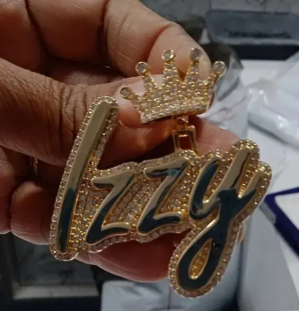 Pendentif personnalisé avec couronne, style hip-hop, serti de moissanite, collier avec nom personnalisé, breloque lettre personnalisée, bijoux pour homme et femme